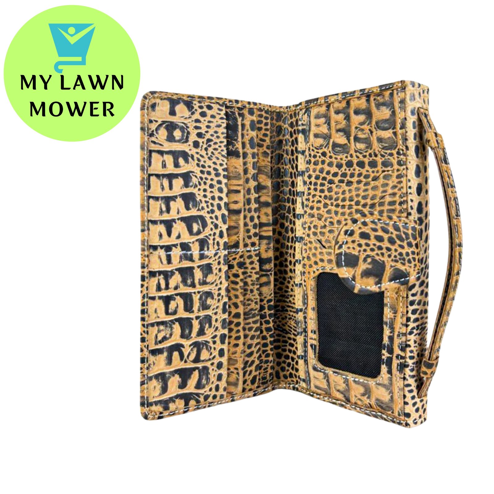 MyLawnMower Crocodile Beige Leather Clutch with Moving Handle – Adult Female, Elegant & Versatile (USA)